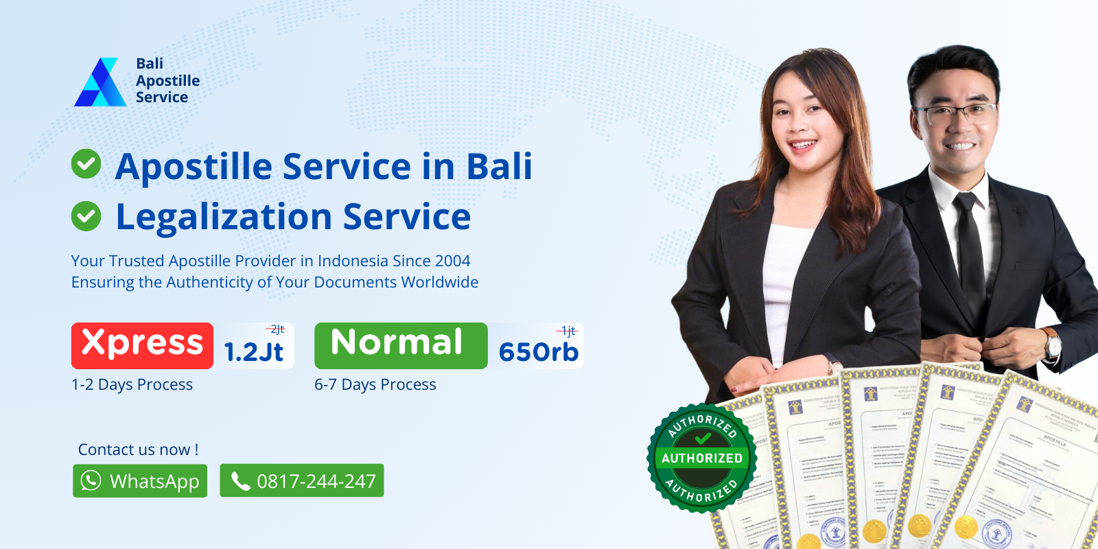 The Most Reliable Apostille and Legalization Services in Bali! Document legalization can often be confusing and time-consuming. Luckily, our experienced team is here to help you get your documents ready for international use, quickly and accurately!